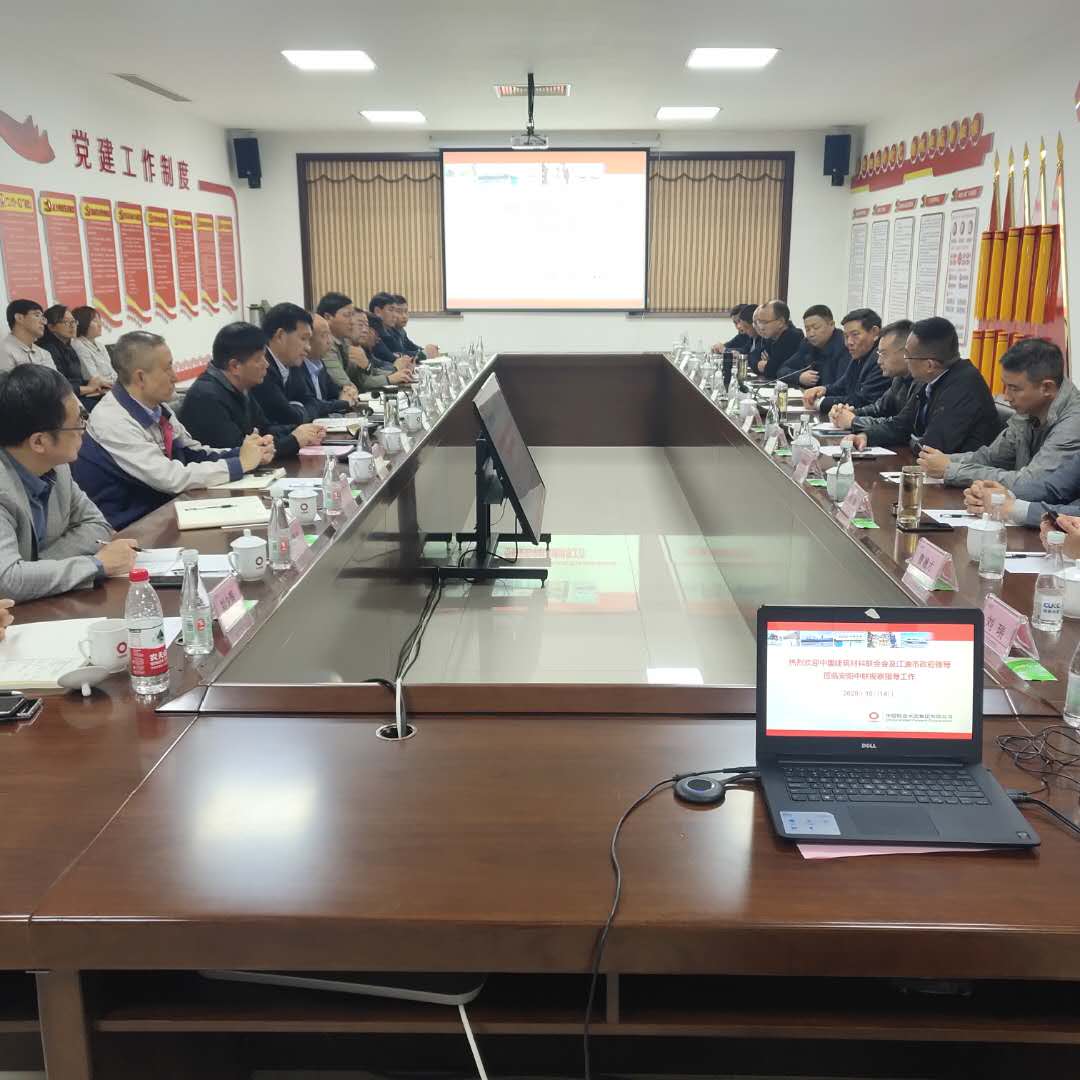 2020年10月14日,中国建筑材料联合会会长乔龙德及江油市政府一行莅临安阳j9.com调研工作。河南区副总裁、安阳j9.com党委书记、总经理黄颂高、河南区副总裁刘奕敏陪同调研。乔会长先后实地参观了生产一线、企业展厅,随后召开座谈会,江油市副市长周世明一行10人、安阳j9.com班子成员、中层正职以上人员参加了座谈会。