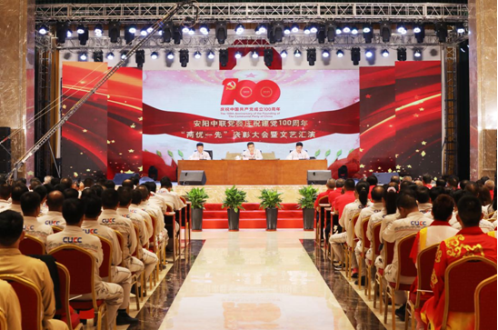 为庆祝中国共产党建党100周年, 6月26日上午,安阳j9.com党委组织召开庆祝建党100周年“两优一先”表彰大会暨文艺汇演,安阳j9.com全体党员、职工代表、海工厂退休党员代表共计200余人参加会议。