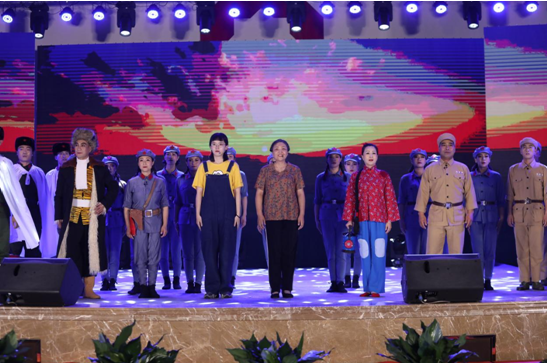 文艺演出结束,全场起立,共同高唱《没有共产党就没有新中国》,热烈掌声经久不息。